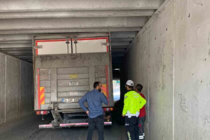 Alt geçitte sıkışan kamyonun yardımına ekipler yetişti