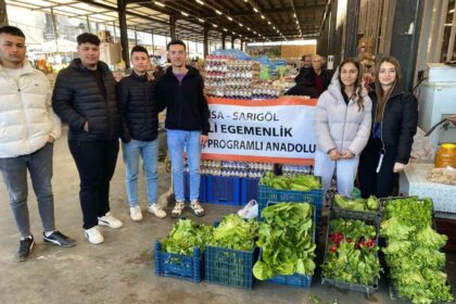 Manisa’nın Sarıgöl ilçesinde doğal yöntemlerle üretim yapan öğrenciler, yetiştirdikleri sebze ve meyveleri pazarda ve okul…
