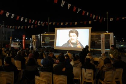 Yunusemre Belediyesi 100. Yıl Meydanı’nda vatandaşlar açık hava sineması keyfi yaşadı. ‘Selvi Boylum Al Yazmalım’…